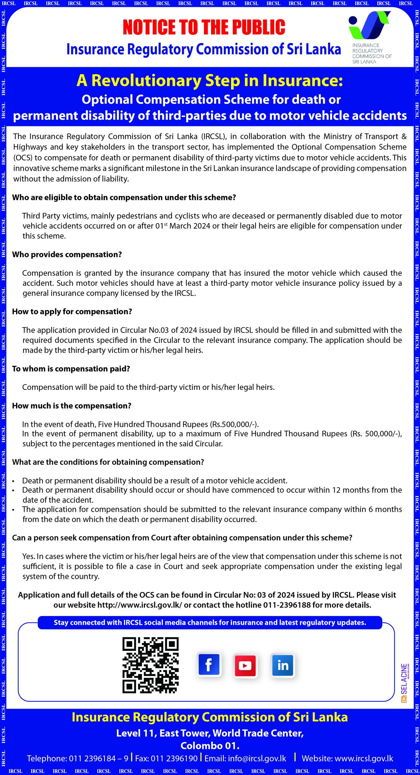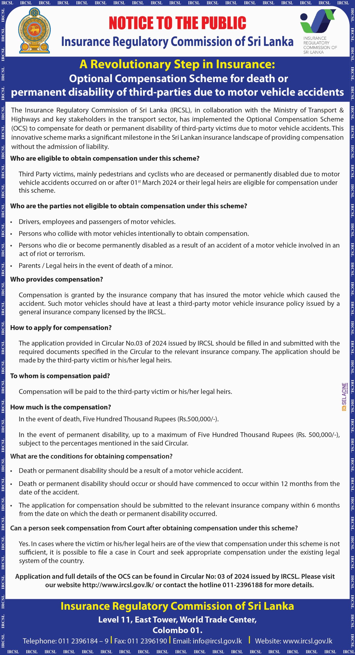 Rs. One Million Compensation, Optional Compensation Scheme(OCS) for Third Party Motor Accident Victims