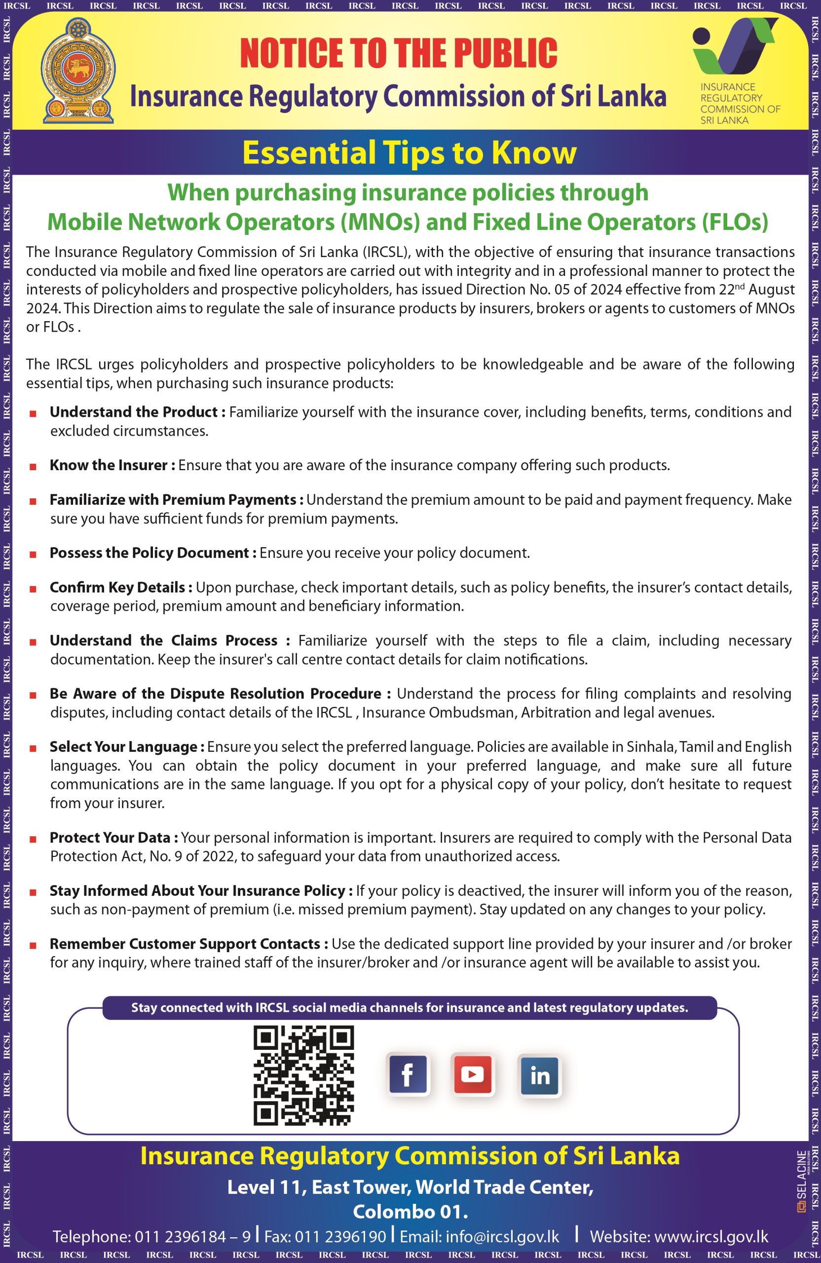 Brochure – Message to Insurance Advisors – From the Insurance Regulatory Commission of Sri Lanka