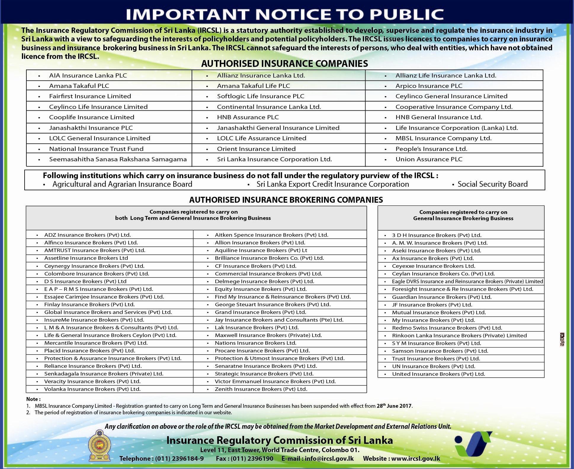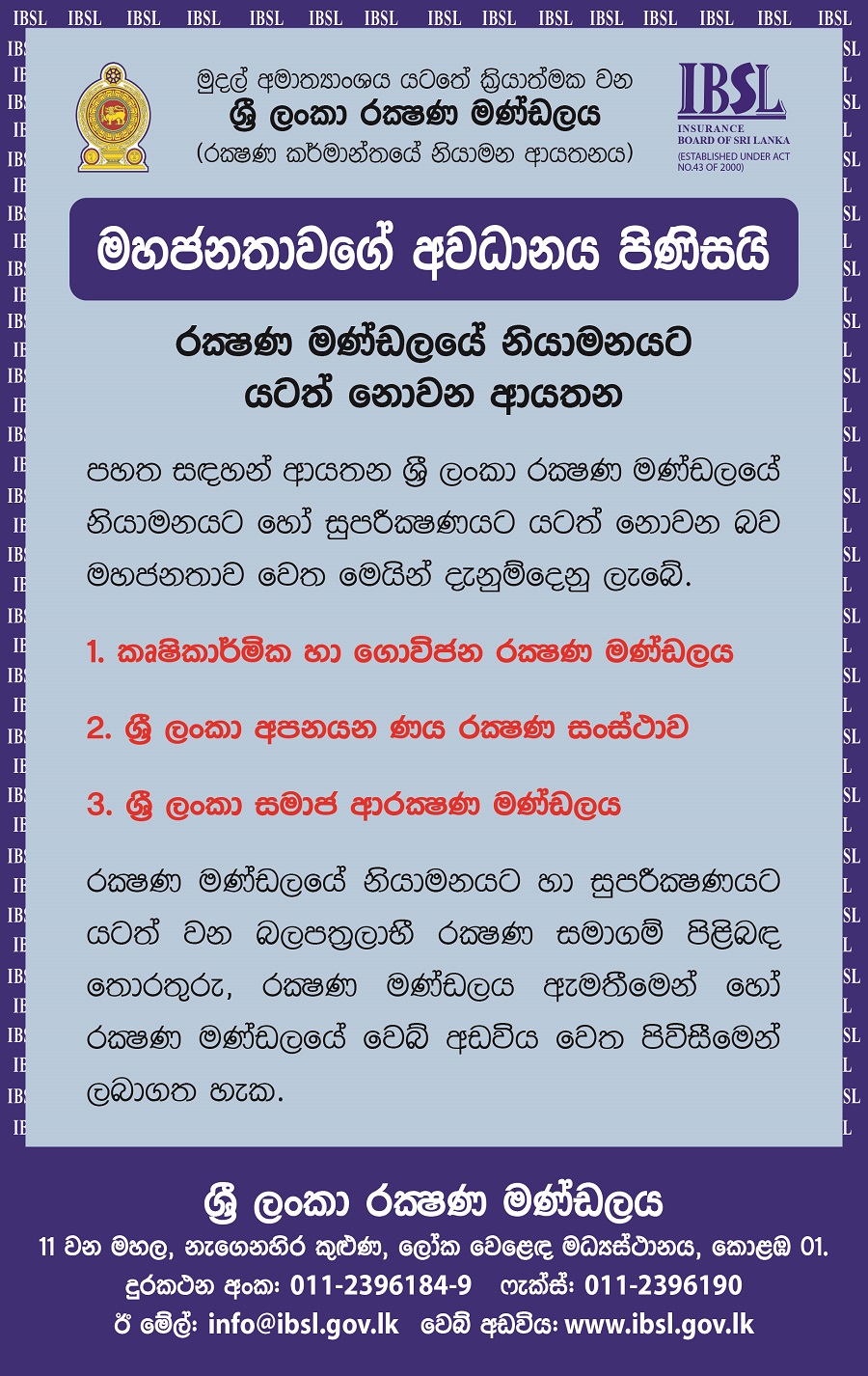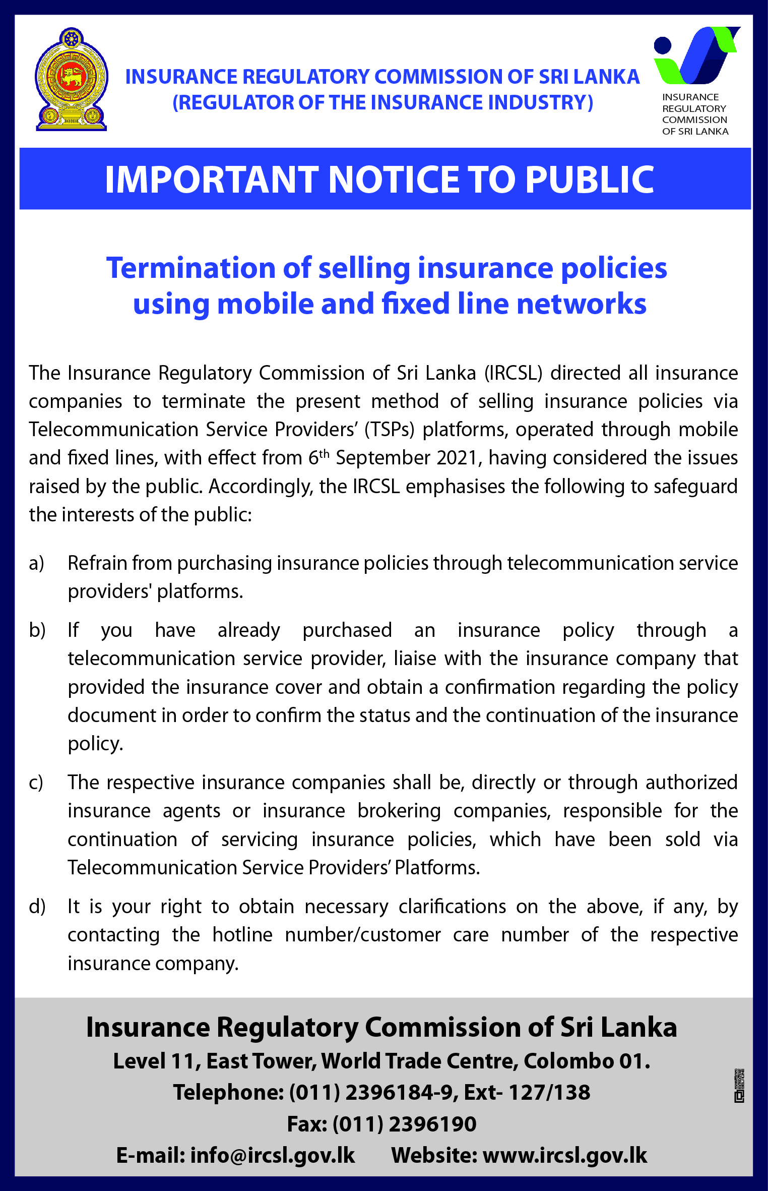 செய்தி வெளியீடு – இலங்கை காப்புறுதி ஒழுங்குமுறைப்படுத்தல் ஆணைக்குழு ஆயுள் காப்புறுதித் தயாரிப்பு மதிப்பாய்வு மற்றும் மேம்பாடு குறித்து பொதுமக்களின் கருத்துக்களை வரவேற்கிறது.