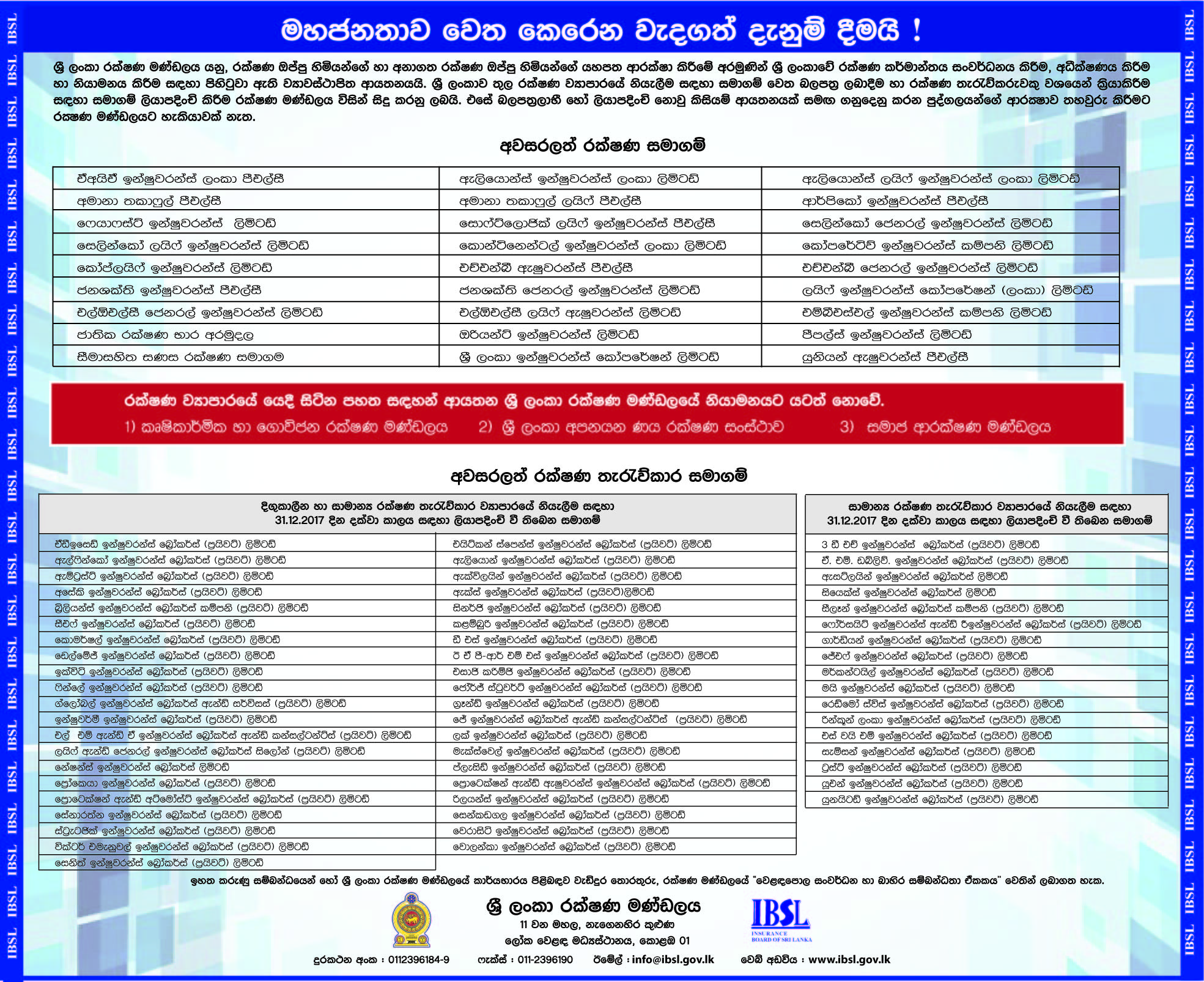 செய்தி வெளியீடு – இலங்கை காப்புறுதி ஒழுங்குமுறைப்படுத்தல் ஆணைக்குழுவில் புதிய ஆணைய உறுப்பினர்கள் நியமனம்